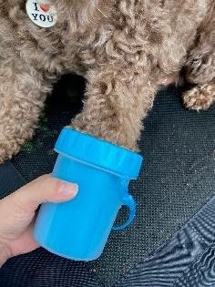 「雨上がりの土サイトで、足回りの毛や肉球の間に泥が絡まったまま固まってしまい、苦労した経験があります。足洗いカップがあれば、中にシリコンブラシが入っているので、少ない水で足を綺麗に洗えます。冬は寒いので、少ない水量で足が洗えることも魅力です。」と、田中さん