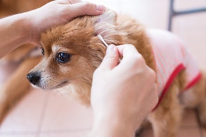 耳掃除は、必ず犬の耳専用のイヤークリーナーを使用して行ってください。アルコールを含んだものや、顔や体用のクリーニングシートを耳掃除に使用されてる方がいらっしゃいますが、繊細な犬の皮膚を刺激してしまい、炎症を引き起こすことがあります。家族の過剰な耳掃除によって人工的に引き起こされる外耳炎もあるので注意が必要です。