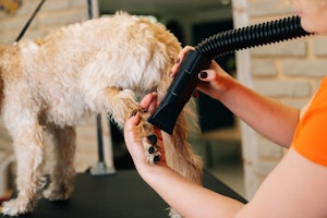 トリミングサロンでは、シャンプー後はドライヤーで指間の被毛までドライヤーで乾燥させ、足裏に水分が残らないよう乾燥させています。家庭で足を洗う場合も、ドライヤーで十分に乾燥させるようにしましょう。ただし、ドライヤーの熱風もワンコの敏感な足裏を刺激しストレスになるため、できる限り短時間で完了させてください。洗浄までしなくとも、ピンブラシやスリッカーで足回りの毛を梳かすだけでも十分汚れ落としの効果はありますよ。