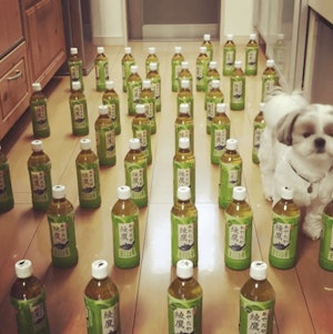 - ある程度動かしたら、ワンコの前に2つのコップを並べて置きます。