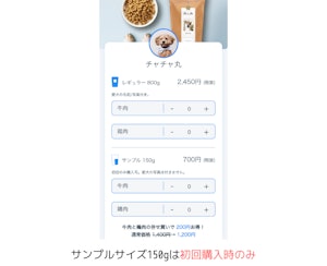 いままでは通常購入(定期便ではない購入)では、サンプルサイズ150gはいつでも購入が可能でした。リニューアル後は初回購入時のみ購入いただけます。