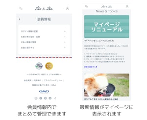 そのほか、レオ&レアからのお知らせやキャンペーン情報をお伝えする「News&Topics」のコーナーを設置しました。マイページを定期的に確認いただくことで、大切な情報をカンタンに確認することができます。